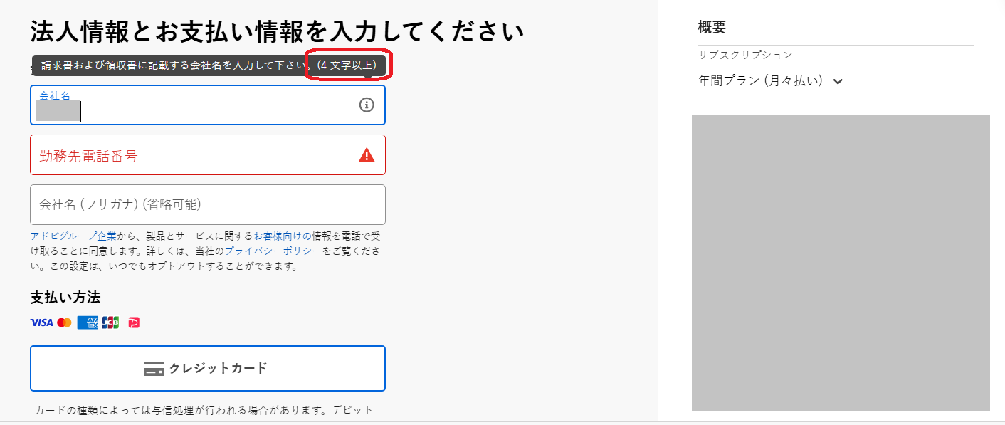 ・会社名の入力欄が「4文字以上」となっているため、2~3文字の名称だとアウトだった。